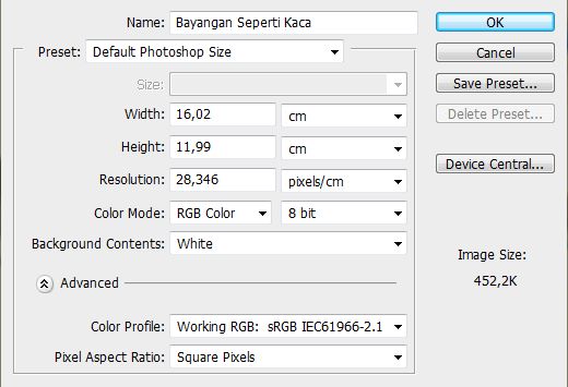 1. Langkah awal sobat buat halaman kerja berukuran default Photoshop Size.