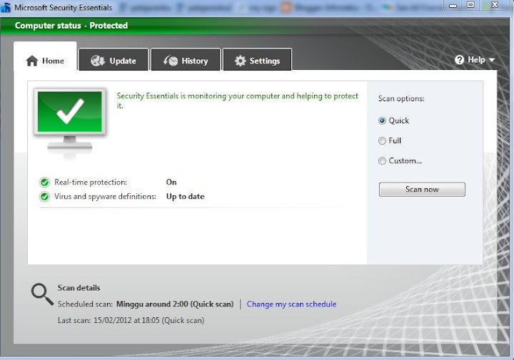 Apa pun anti virus gratisan yang sobat install di komputer sobat tentunya fitur yang diberikan oleh pembuatnya pasti selalu dibatasi, sebelum sobat benar-benar membelinya, contoh yang palinng menyebalkan fitur yang selalu mereka batasi itu adalah update otomatisnya, Tapi itu tidak berlaku Microsoft Security Essential. Virus mereka selalu update setiap harinya, selain itu juga aplikasi ini tidak membuat system soba menjadi lambat, aplikasi ini sangat ringan, dan sampai sekarang Anti Virus yang terinstall di komputer saya hanyalah Microsoft Security Essential.